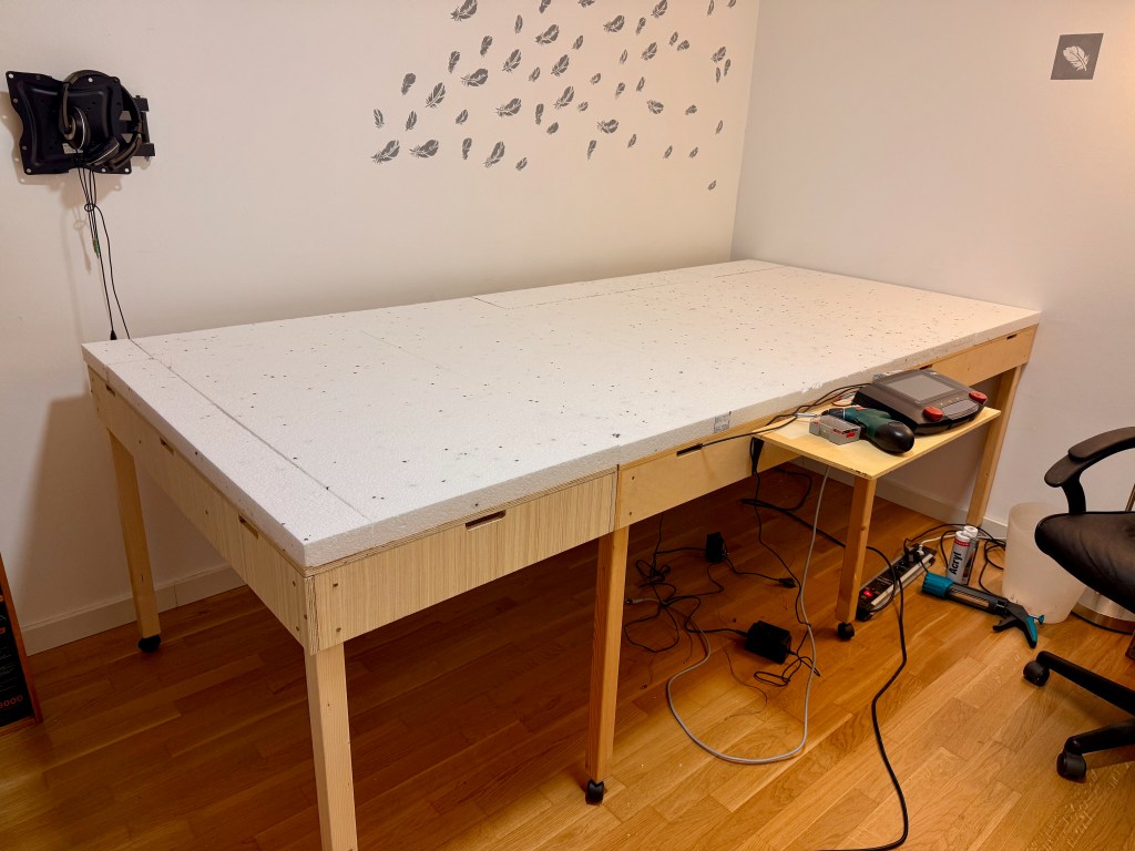 Schnell noch neue Styroporplatten besorgt, zugeschnitten und probehalber ausgelegt…