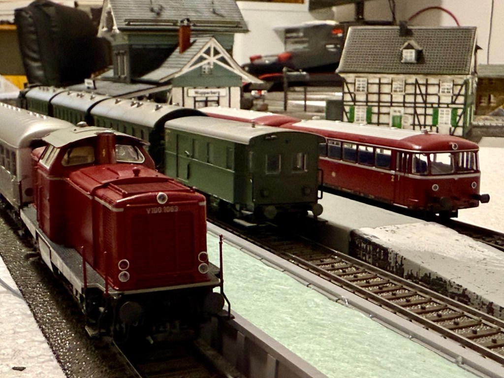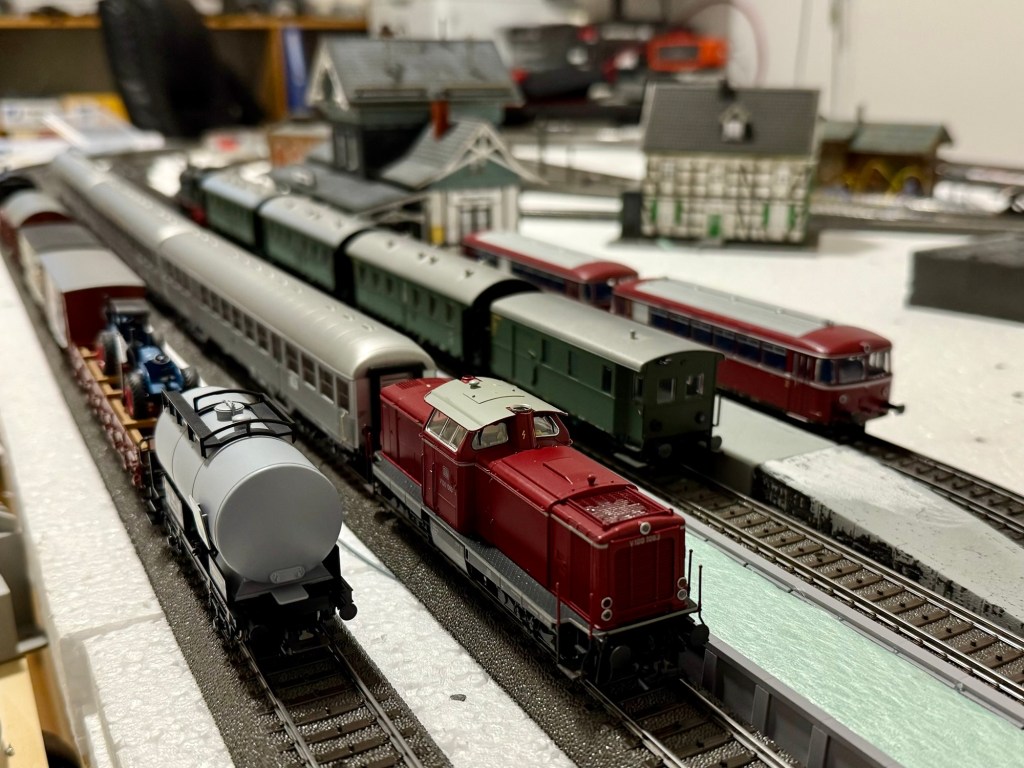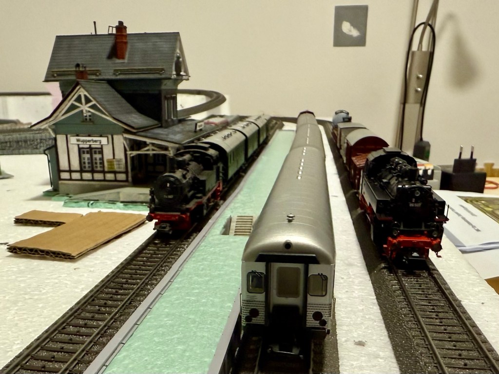 Danach musste ich erstmal die Kapazität des Bahnhofs testen. Da die Elektrik noch zickte, zunächst nur eine Stellprobe…