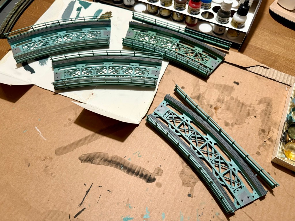 Während ich mich noch mit der zickenden Elektrik rumärgerte, hat meine bessere Hälfte schon Rostschutzfarbe auf die Brückenteile aufgetragen.