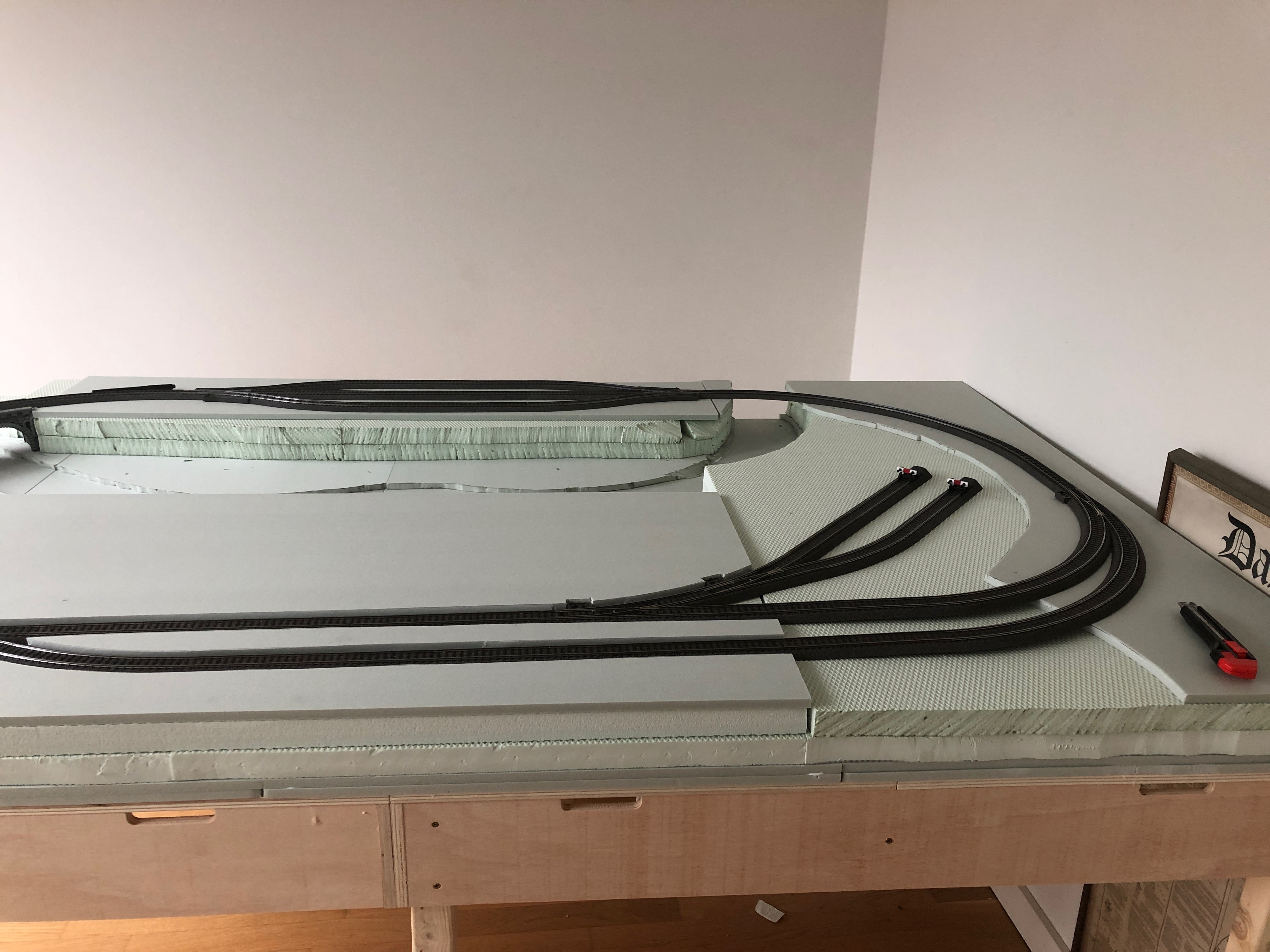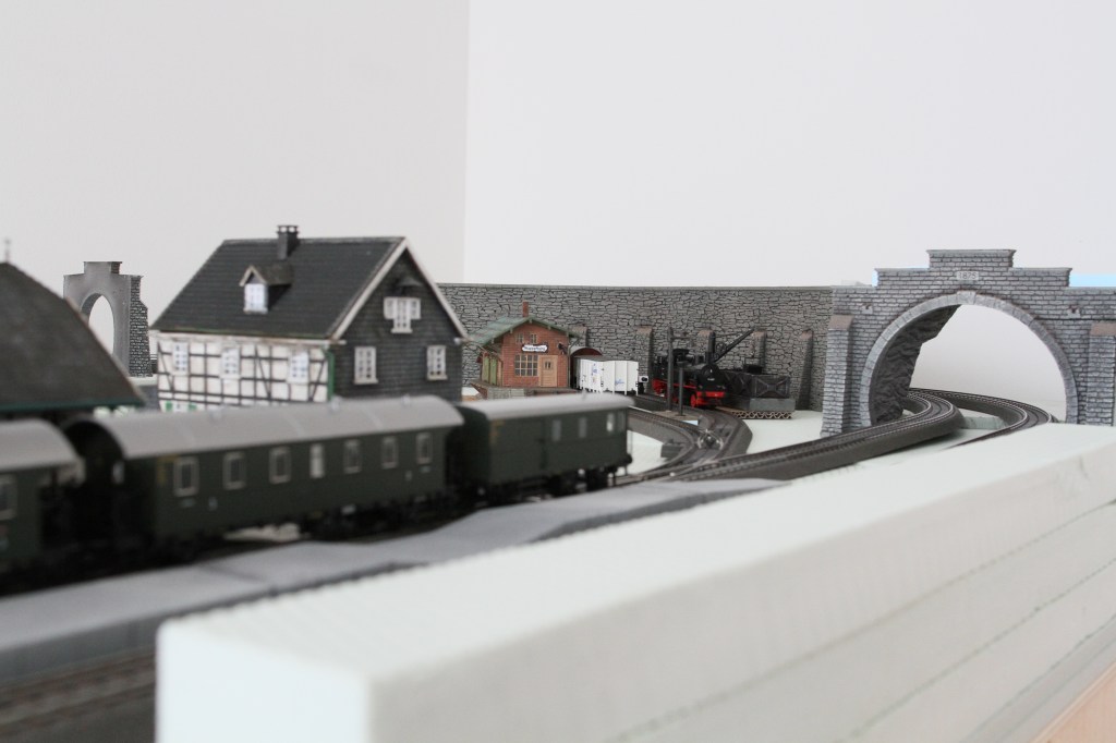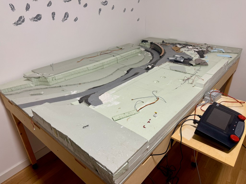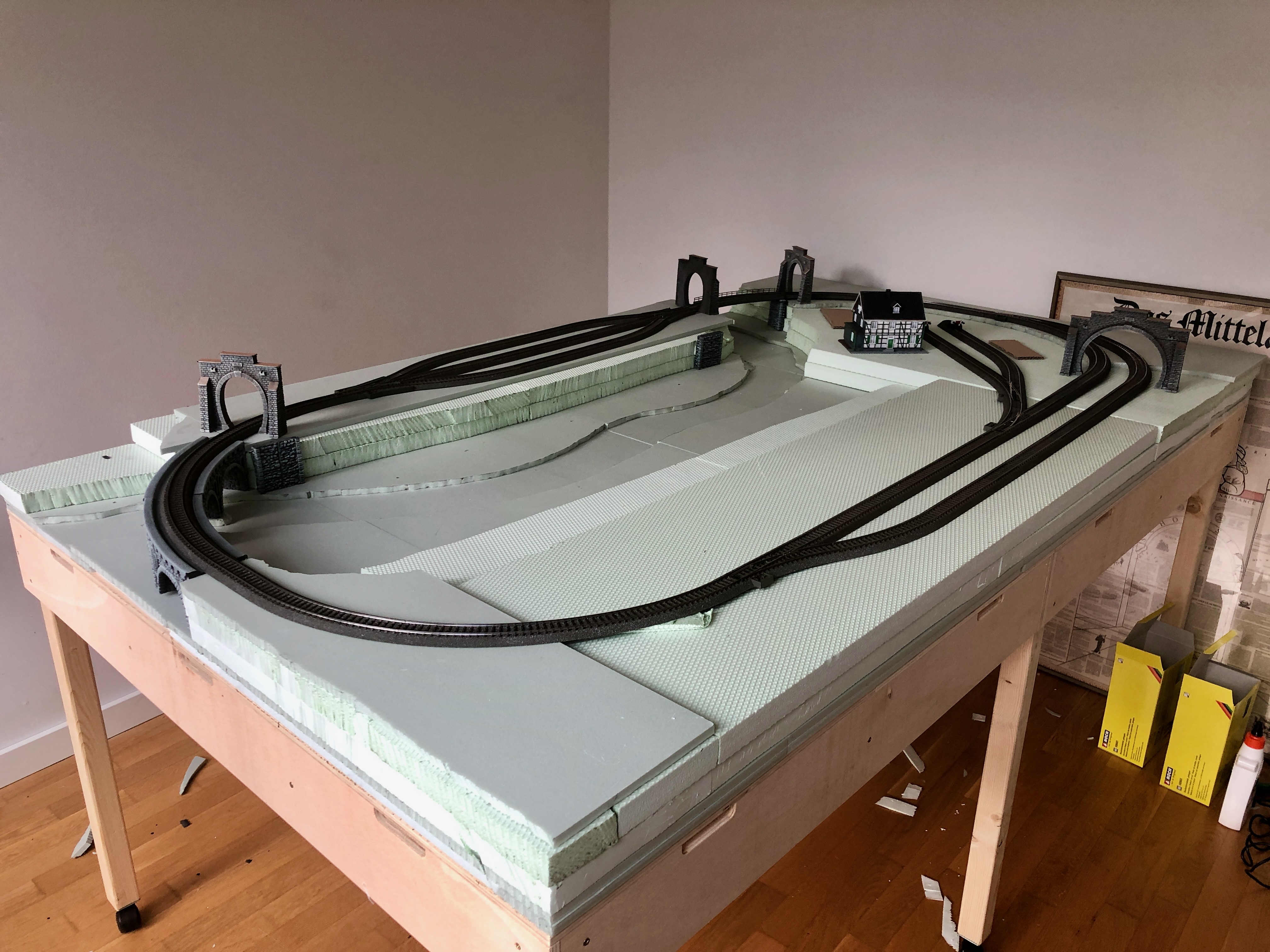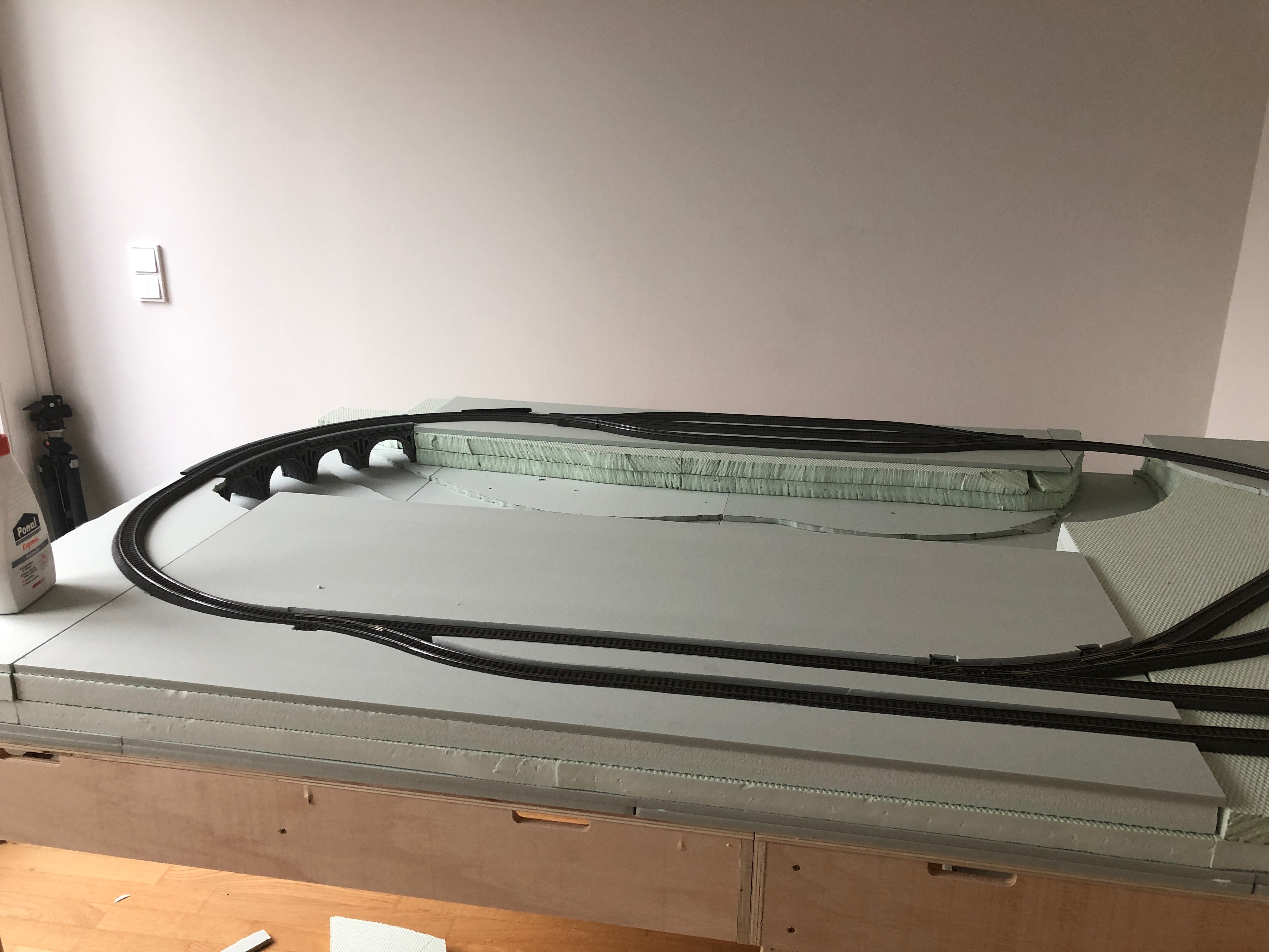 Jetzt heißt es warten auf das benötigte zusätzliche Gleismaterial und vor allem die Styroporrampen für die zweite Ebene..