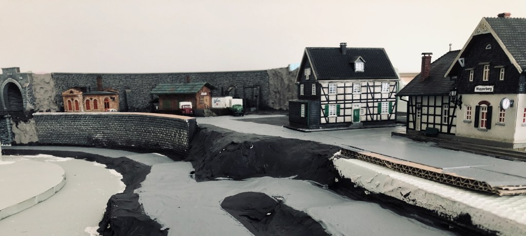 Die Idee war, dass die Wupper über die komplette Länge der Anlage fließt. Als Nebenbahn könnten dann Pendelzüge vom Schattenbahn zum Bahnhof Wupperberg vorne fahren.