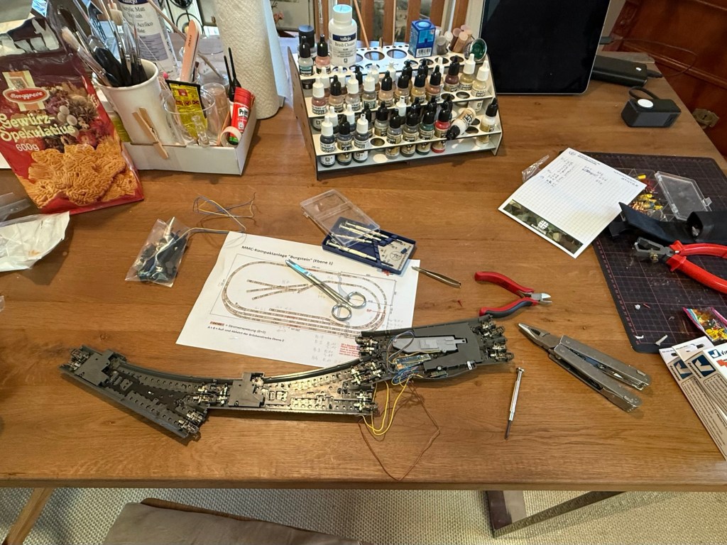 … wurden natürlich sofort verbaut. Damit steht die Anlage. Als Nächstes werden die restlichen Kabel verlegt und die Rampen vergibst. Danach wird die Innenseite des Tunnels geschwärzt und alles mit Acryl verklebt. Und dann kann endlich der Landschaftsbau beginnen. Also viel zu tun über Weihnachten. 🤗